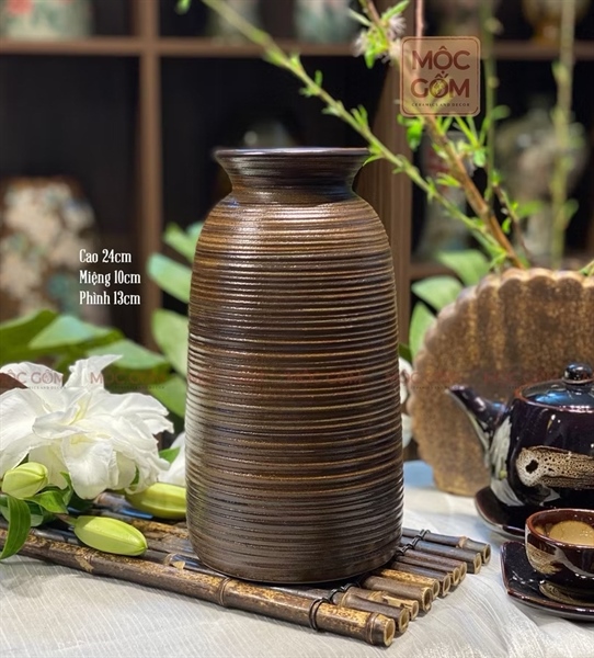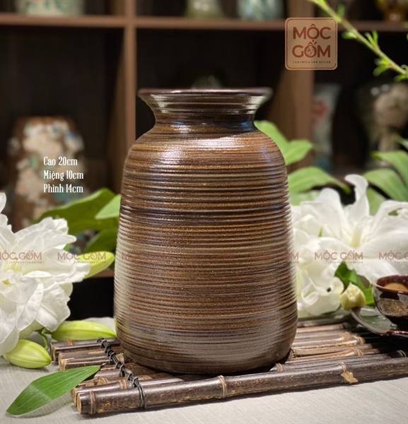 Bình gốm cắm hoa size trung vân nổi