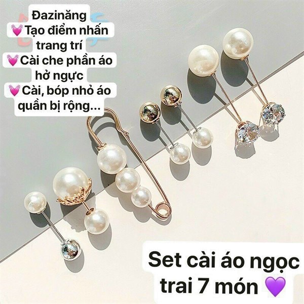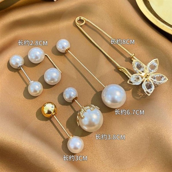 Set 7 chiếc ghim quần áo ngọc trai đính đá