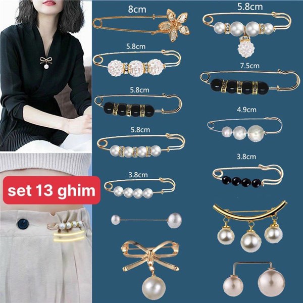 Set 13 chiếc ghim áo đính ngọc trai