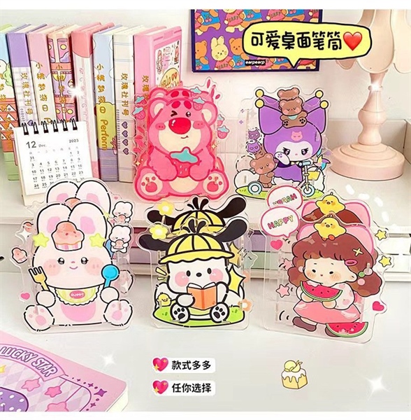 Ống đựng bút 4 ô xoay+sticker sanrio