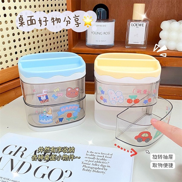 Lọ bút 2 tầng 4 ngăn kèm sticker