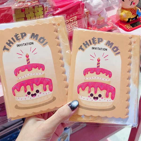Xấp 5 thiệp mời bánh kem hồng DQ2496
