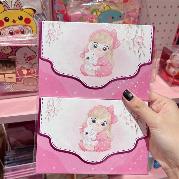 Xấp 4 thiệp mời bé gái ôm thỏ